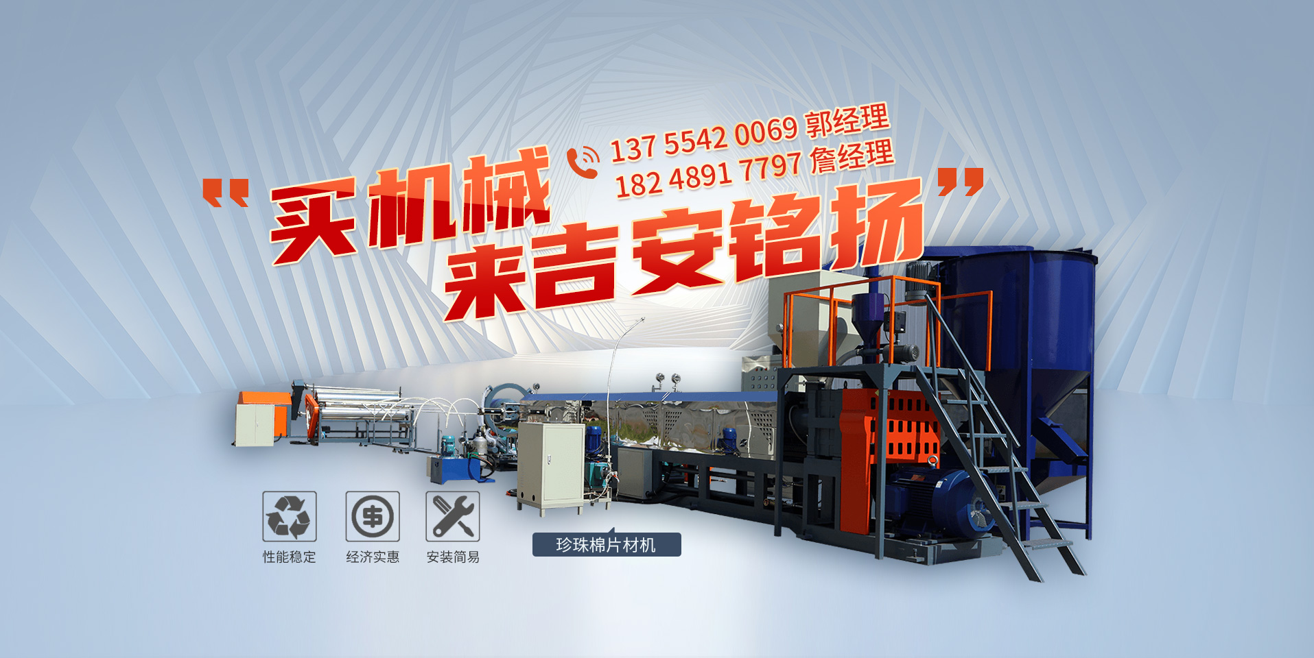 吉安銘揚(yáng)機(jī)械有限公司成立于2019年,總經(jīng)理有著二十多年從業(yè)經(jīng)驗(yàn),是一家專注于珍珠棉機(jī)械設(shè)備研發(fā)、開發(fā)、生產(chǎn)及銷售的現(xiàn)代高科技企業(yè),主要產(chǎn)品有:珍珠棉發(fā)泡機(jī)、覆膜機(jī)、珍珠棉電復(fù)合機(jī)、珍珠棉造粒機(jī)等數(shù)十種產(chǎn)品,應(yīng)用于包裝、建筑、材料等行業(yè)。總部及研發(fā)基地設(shè)立于風(fēng)景秀麗的紅色革命根據(jù)地吉安。